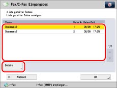 Sollte es länger als 24 Stunden dauern, um alle Daten für ein geteiltes I-Fax zu empfangen, werden nur die während dieses Zeitraums empfangenen Daten verarbeitet. Die übrigen Daten können nicht empfangen werden. Nähere Informationen zu den Timeout-Einstellungen finden Sie im Abschnitt "Definieren von Fax/I-Fax Eingangsboxeinstellungen".