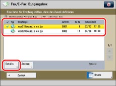 Prüfen der Detailinformationen für/Löschen einer Datei in einer Vertraulichen Faxeingangsbox