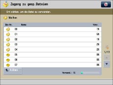 Berühren Sie die Taste, um eine Liste der in einer Mailbox gespeicherten Dateien zu drucken.