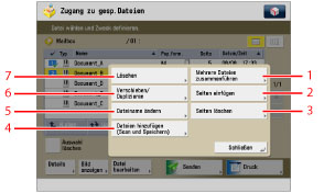 Berühren Sie diese Taste, um bestimmte Seiten aus einer Datei zu löschen.