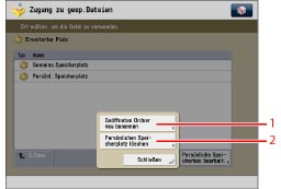 Berühren Sie diese Taste, um das Menü zur Bearbeitung der Ordner im Speicherplatz anzuzeigen.