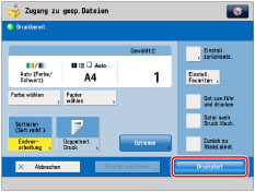 Wenn Sie eine Datei, die von einem Computer aus oder über die Option [In Mailbox speichern] der Kopierfunktion gespeichert wurde, mit den beim Speichern der Datei festgelegten Einstellungen ausdrucken möchten, drucken Sie die Datei nicht über das Display zum Ändern der Druckeinstellungen aus. Anderenfalls wird die Datei eventuell nicht mit den beim Speichern der Datei festgelegten Einstellungen gedruckt.