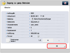 Wählen Sie die gewünschte Mailbox → Wählen Sie die gewünschte Datei → Berühren Sie die Taste [Details].