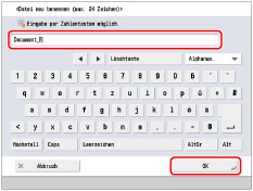 Geben Sie einen Dateinamen ein → Bestätigen Sie durch Berühren der Taste [OK].
