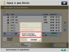 Berühren Sie die Taste [Dateien hinzufügen (Scan und Speichern)].