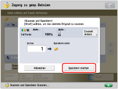 Wenn das folgende Display angezeigt wird, nachdem der letzte Satz von Originalen gescannt ist, berühren Sie die Taste [Speichern starten].