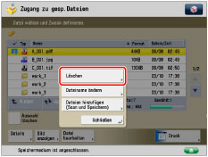 Berühren Sie nacheinander die Tasten [Zugang zu gesp.Dateien] → [Speichermedium].