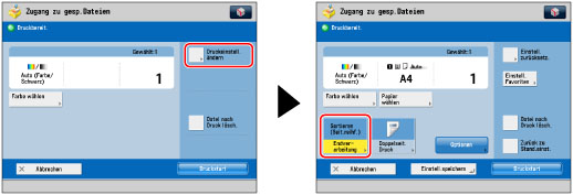 Die Funktionen <Sattelheftung>, <Falz>, <Trimmen> und <Einstellung Drucks. oben/unten> können nur verwendet werden, um eine in einer Mailbox gespeicherte Datei zu drucken.