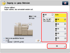 Wenn Sie <Deckblatt hinzu> und <Trennblatt> einstellen möchten, wählen Sie dafür dasselbe Papierformat.