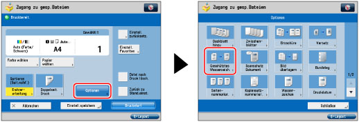 auf dem Bedienfeld betätigt haben, wird eingedruckt.