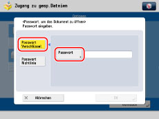 Berühren Sie nacheinander die Tasten [Optionen] → [Passwort um Dok. zu öffn.].
