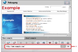 , um den Verlauf eingegebener URLs anzuzeigen. Sie können eine Webseite aus dem Verlauf anzeigen lassen. Sie können den Verlauf der eingegebenen URLs durch Berühren von [Alles löschen] in [Verlauf] (im Menü) löschen. (Vgl. Abschnitt "Löschen des URL-Verlaufs".)|