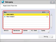 Sie können die Namen der in den Favoriten gespeicherten Webseiten ändern und nicht mehr benötigte Webseiten löschen.