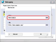 Durch Berühren von [OK] ohne die vorherige Eingabe von Zeichen im Namensfeld wird die URL-Adresse als Name registriert.