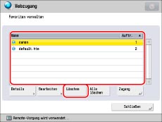 Wenn Sie eine registrierte Webseite aus den Favoriten löschen möchten: