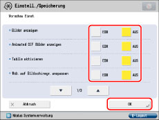 Wenn [Intervall Flash Animation] auf 'Kurz' gesetzt wird, können andere Vorgänge, wie Drucken, sich verlangsamen.