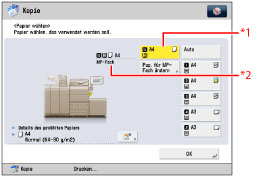 *2 Papierformat/Papiertyp des aktuell im Mehrzweckfach eingelegten Papiers