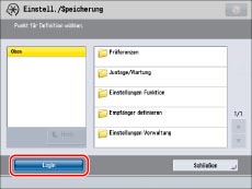Wenn Sie die Definition der Einstellungen beendet haben, berühren Sie unten rechts die Taste [Logout], um sich auszuloggen.
