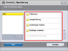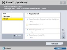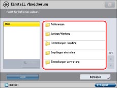 Wenn Sie die Definition der Einstellungen beendet haben, berühren Sie unten rechts die Taste [Logout], um sich auszuloggen.