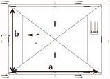 Wenn Sie eine Testseite mit Papier ausgegeben haben, das kleiner ist als 287 mm x 393 mm, können Sie die Länge von a und b nicht messen, da das Bild nicht auf das Papier passt. Geben Sie in diesem Fall die prozentuale Vergrößerung/Verkleinerung ein, um den Zoomfaktor anzupassen, und nicht die tatsächliche Länge von a und b.