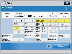 Berühren Sie nacheinander die Tasten [Präferenzen] → [Einstellungen Anzeige] → [Einstellungen Display Kopieranzeige].