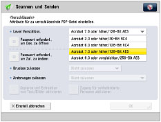 Berühren Sie die Taste [Einstellungen 256-Bit AES für Verschl. PDF].