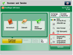 Berühren Sie nacheinander die Tasten [Einstellungen Funktion] → [Senden] → [Allgemeine Einstellungen].