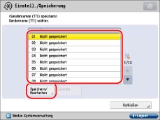 Wählen Sie die Nummer, unter der der Sendername gespeichert werden soll → Berühren Sie die Taste [Speichern/Bearbeiten].