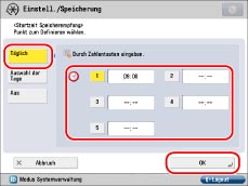 Bei Auswahl von [Täglich] wählen Sie eine Nummer ([1] bis [5]) → Geben Sie die Startzeit über die Zahlentasten