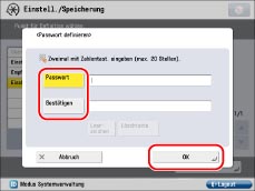 Geben Sie [Passwort] und [Bestätigen] ein → Berühren Sie nacheinander die Tasten [OK] → [OK].