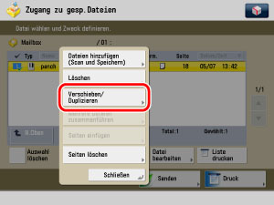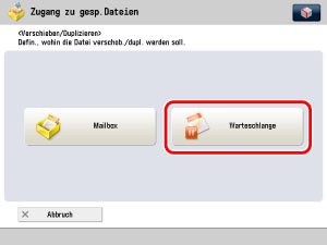 Sie können Dateien nicht in der Fax/I-Fax Eingangsbox, Erweiterten Platz, Erweiterten Platz eines anderen imageRUNNER ADVANCE im Netzwerk oder Speichermedium zur Halten-Warteschlange verschieben oder duplizieren.
