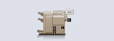 Der Broschüren Finisher N1 und Duplex Scanner + Originaleinzug D-ADF G1 sind angeschlossen.