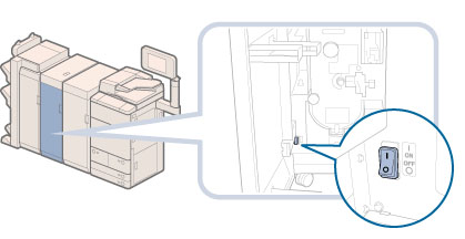 " gestellt wird, stellen Sie ihn zur Seite "I", bevor Sie den Hauptnetzschalter des Professional Locher Integration Unit B1 betätigen. (Ausgenommen, wenn der Finisher N1 oder Broschüren Finisher N1 am System angebracht ist.) |