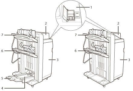 Öffnen Sie diese Abdeckung, um in der Heftklammerneinheit bzw. der Sattelheftungseinheit das Heftklammernmagazin auszutauschen oder einen Papierstau bzw. einen Heftklammerstau zu entfernen. (Vgl. "Wartung" und "Problemlösung".)