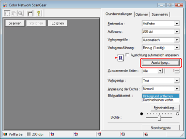 Wenn Sie über den Einzug scannen, können Sie Network ScanGear so einstellen, dass das Dokument in der richtigen Ausrichtung auf dem Computermonitor angezeigt wird.