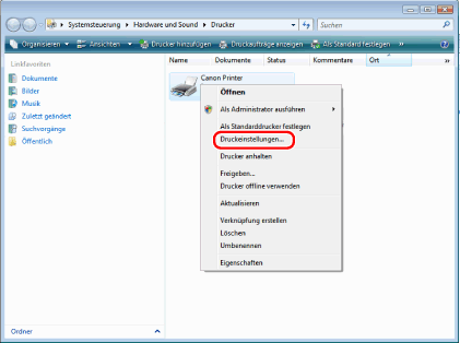 ] (Start) → [Geräte und Drucker].Klicken Sie für Windows XP Professional/Server 2003 auf [Start] → [Drucker und Faxgeräte].