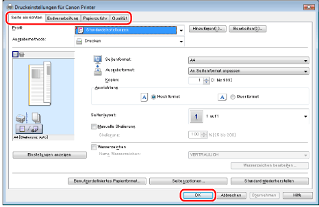 Nähere Informationen zu den verfügbaren Druckfunktionen finden Sie unter "Druckfunktionen" oder in der Online-Hilfe (vgl.Anzeigen der Online-Hilfe").