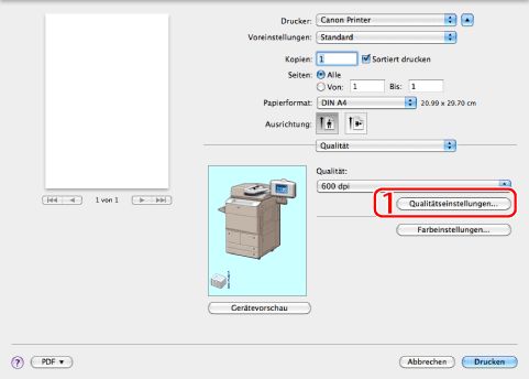 Hier können Sie Einstellungen zur Druckqualität vornehmen.