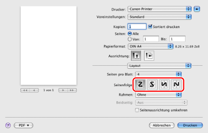 Wählen Sie unter [Seitenfolge] die Seitenreihenfolge.