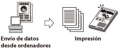 Puede utilizar este equipo como impresora de red de alta velocidad. También son posibles varias salidas, tales como Impresión a doble cara y alineación de páginas.
