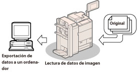 La función de lectura en red permite utilizar la imageRUNNER ADVANCE 8205 PRO/8295 PRO/8285 PRO como un escáner convencional. Puede leer un documento con el equipo y ver los datos en la aplicación que esté utilizando en su ordenador. Puede leer imágenes hasta un tamaño de A3 con una resolución de 600 x 600 ppp.
