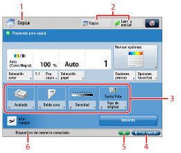 Aquí se muestra el progreso de los trabajos y las operaciones de copia, así como el estado de los dispositivos y consumibles. Además, según el servicio de inicio de sesión que esté utilizando, aquí puede aparecer el ID de departamentos o el nombre de usuario.