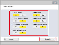[Tono fin RX/TX en mem.] y [Tono error RX/TX en mem.] pueden establecerse cuando la función Fax está disponible. Para información acerca de los productos opcionales necesarios para utilizar esta función, consulte "Productos opcionales necesarios para cada función".