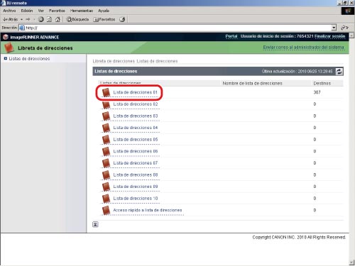 Haga clic en [Libreta de direcciones] → [Lista de direcciones 01] en la pantalla de Lista de direcciones.