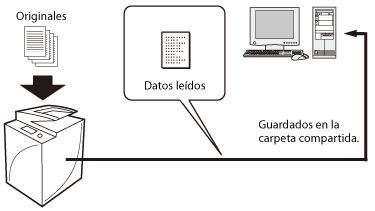 En esta sección se explica cómo crear una carpeta "PDF-Lectura" compartida en una unidad de un ordenador con Windows que esté conectado al equipo a través del protocolo SMB y cómo enviar a esa carpeta documentos leídos a doble cara en formato PDF.