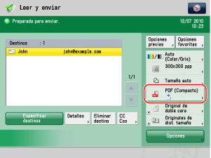 Utilizando el modo PDF reconocible, podrá convertir documentos de papel en PDF que es texto reconocible. Por ejemplo, podrá ahorrar espacio digitalizando documentos de papel como, por ejemplo, un curriculum vitae. El cifrado de archivos PDF le permitirá restringir a usuarios no autorizados el que puedan abrir archivos y buscar información. Si establece una contraseña cuando envía documentos leídos, podrá evitar que ocurra la divulgación de información si los documentos se envían a un destino equivocado.
