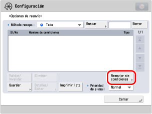 Seleccione la condición de reenvío para imprimir → pulse [Imprimir lista].