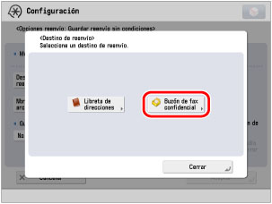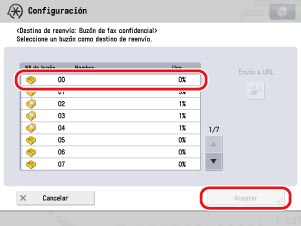 Pulse [Destino de reenvío] → [Buzón de fax confidencial].