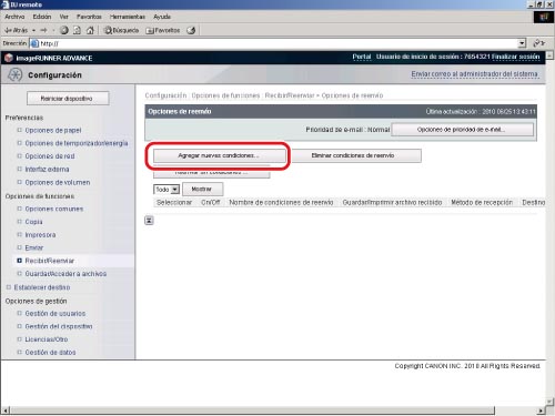 Haga clic en [Agregar nuevas condiciones...] → especifique las opciones de reenvío.
