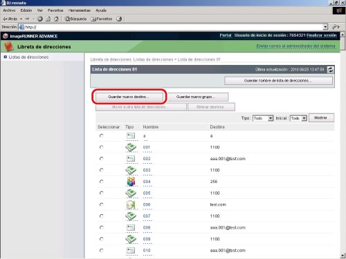 Haga clic en [Libreta de direcciones] → [Lista de direcciones 01] en la pantalla de Lista de direcciones.